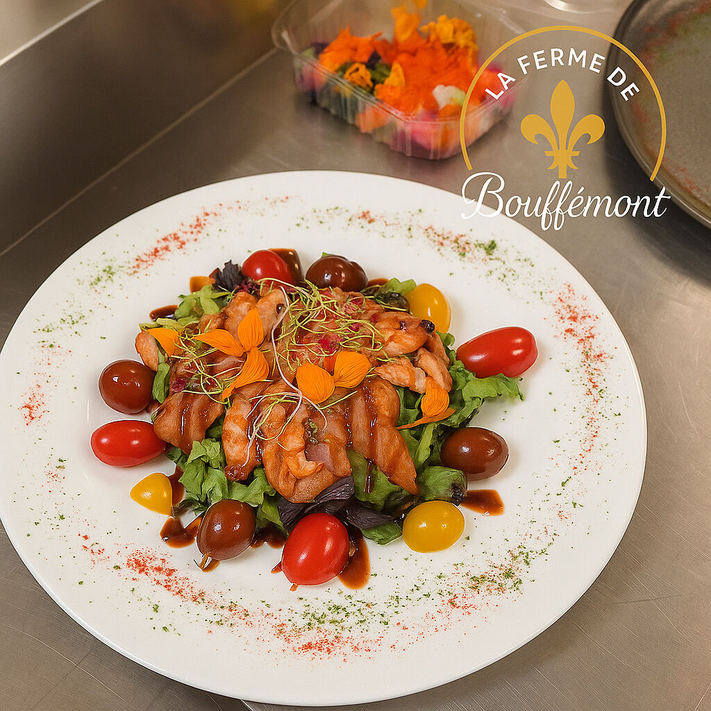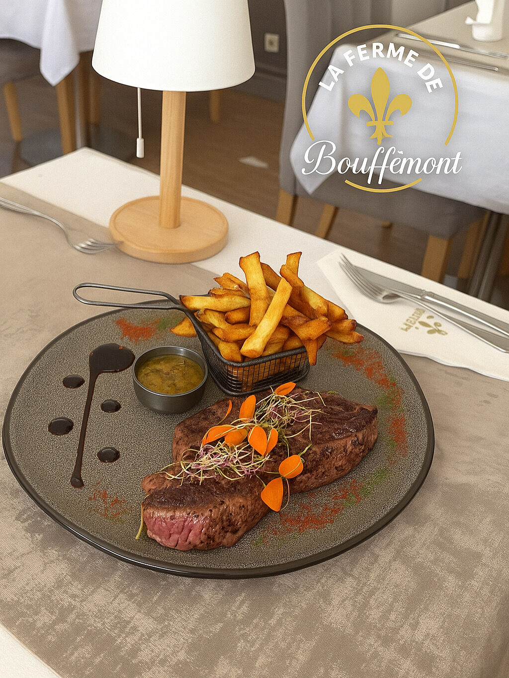 Ici, on met à l’honneur une cuisine faite maison, avec des produits frais et de saison. Que ce soit pour un déjeuner entre collègues, un dîner en famille, ou une soirée entre amis, la Ferme de Bouffémont vous propose une parenthèse gourmande et chaleureuse, dans un décor soigné.